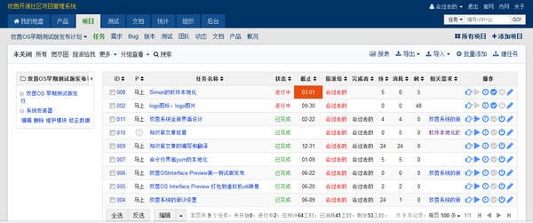 对于当下的开源社区,国外通行的方式个人感觉并不适合,造成了大量拖延症患者存在,影响开发进度以及项目迭代。大多数开源社区的项目管理往往是基于issue(事务)形式,为每一个事务打上“未完成”,“已开始”,“进行中”,“已完成”,“已终结” 类似的标签,对于软件开发中的缺陷管理也是采用类似的方式。这种方法看似简洁,实际上存在一定隐患。只注重结果而不注重过程的管理方式,往往造成代码质量逐渐下降,拖延症问题日益严重。一定需要项目全流程敏捷开发管理,从只注重结果到过程与结果并重。由于开源社区往往所有者处在不同的时空之下,有必要使用在线的项目全流程管理工具。现在常用的项目全流程管理工具有Redmine,Jira,ZentaoPMS之类。本文中后续部分将基于ZentaoPMS(禅道项目管理软件)进行简要叙述。采用本套软件,主要是因为其搭建方便,可直接利用常见的PHP+MySQL网站环境进行搭建(Redmine和Jira分别需要Ruby和Java ME运行时)功能也比较全面,基本上可以做到开箱即用。