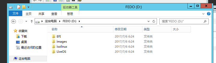挂载上 Fedora 的安装镜像,并将根目录内所有文件复制到前面那个小的 2GB FAT32 分区中,并设置一个卷标,这里设为 FEDO。