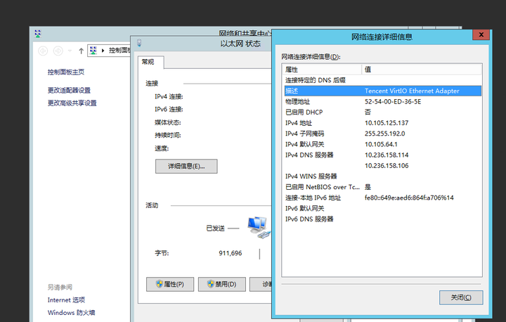 第一步用 RDP 远程桌面登录首先截图记录,保存下本机的网络信息(腾讯云不提供 DHCP),以后会用到。