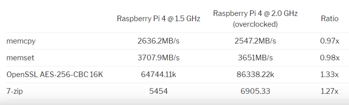 让我们看看,相比默认的 1.5 GHz 频率下运行的 Raspberry Pi 4,可以提升多少性能: